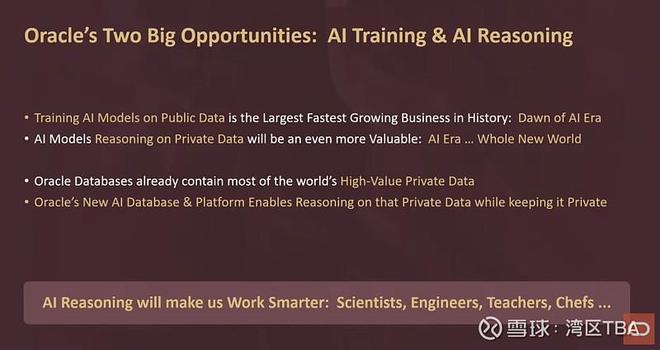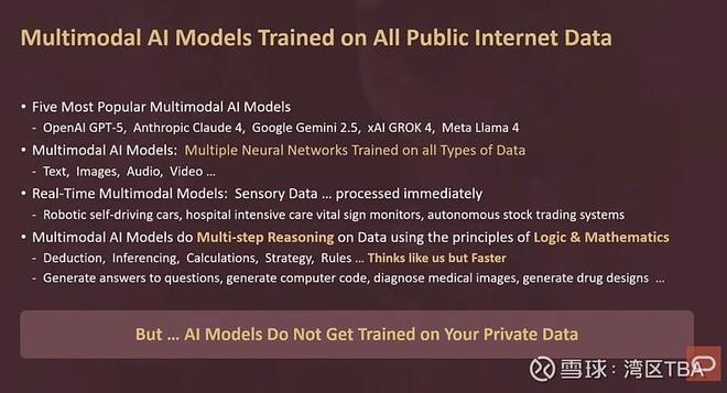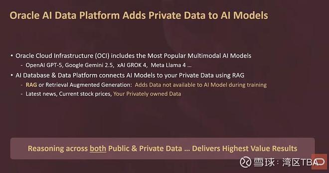 现在,有一件非常有趣的事情,甲骨文明确参与其中。正如我之前所说,这些AI模型是基于公开可用数据——互联网上的所有数据——进行训练的。所以,如果你看ChatGPT、Anthropic、Grok等等,它们都是基于互联网上的所有数据训练的。换句话说,是公开可用数据。