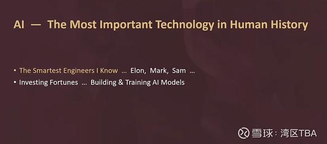 我认识的最聪明的人正在投入巨额财富。具体来说,他们正在用自己的财富来构建和训练这些AI模型。这就是它们的重要性所在,这就是它们的非凡之处。顺便说一句,是的,伊隆(Elon)、马克(Mark)、山姆(Sam),按字母顺序排列。他们都是非常聪明的人,非凡的人物。