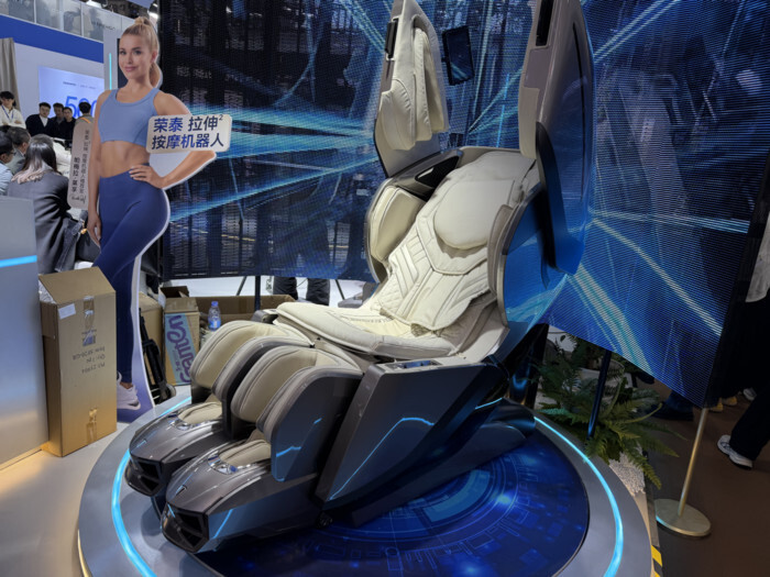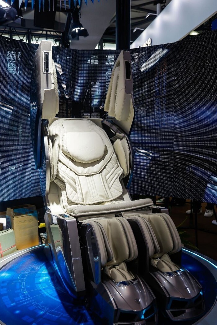 今年AWE期间,荣泰健康发布了全新旗舰产品按摩机器人RT9000。与传统按摩椅相比,这款产品不仅在机械结构与拉伸技术上进行了升级,同时还首次将AI健康系统与云端大模型引入按摩体验之中。