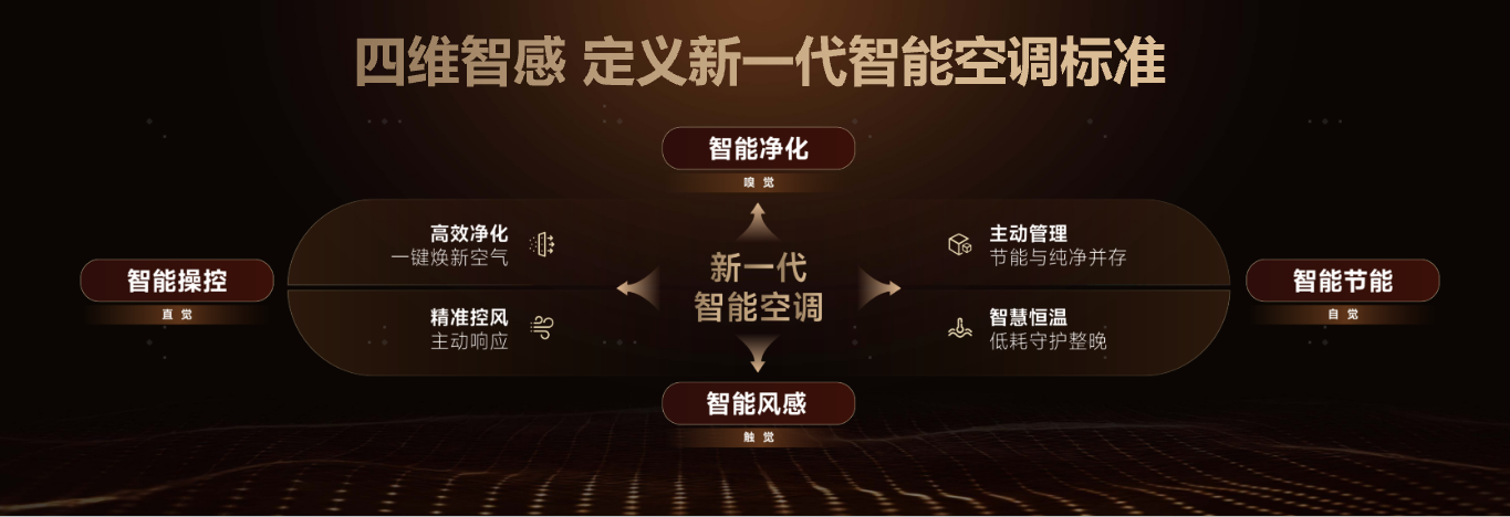 2026年,海信空调以用户为中心,明确“智能、新风、省电”三大核心价值,以AI智能为主线,系统推出智新风、智慧风、智省电三大系列产品矩阵。发布会上,海信同步正式提出行业首个以用户体验为导向的“四维智感”标准——通过智能净化、智能风感、智能操控与智能节能,重新定义新一代智能空调的标准。