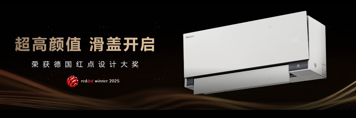 本次亮相的海信空调智慧风系列,正是海信空调“三步走”战略落地开局之年的核心力作。智慧风E5采用滑盖设计,关机时滑盖闭合,出风口全隐藏,纯平机身与墙面无缝贴合,融为一体,大幅提升了卧室家装质感;开机时,滑盖向上展开,如钢琴琴盖轻启,仪式感拉满,该外观设计一举斩获德国红点设计大奖。