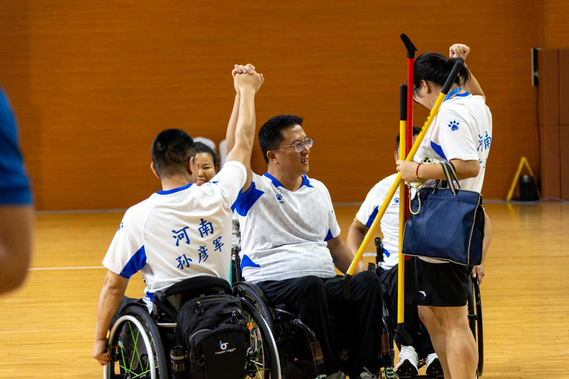 在最后一场轮椅公开组的比拼中,内蒙古队对阵河南队。在常规的6局较量中,双方打到3比3平分。最终,通过加时赛,内蒙古队夺得该组别冠军。“太激动了,第一次来广州参赛就拿到冠军。”来自内蒙古代表队的运动员高全福说,很高兴能参加这么高规格的赛事,第一次和众多代表队一起同台竞技。