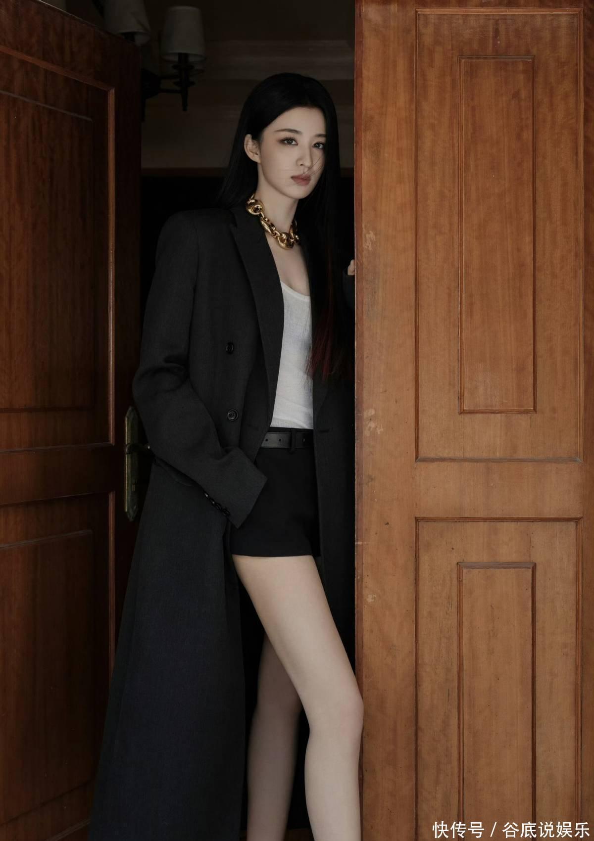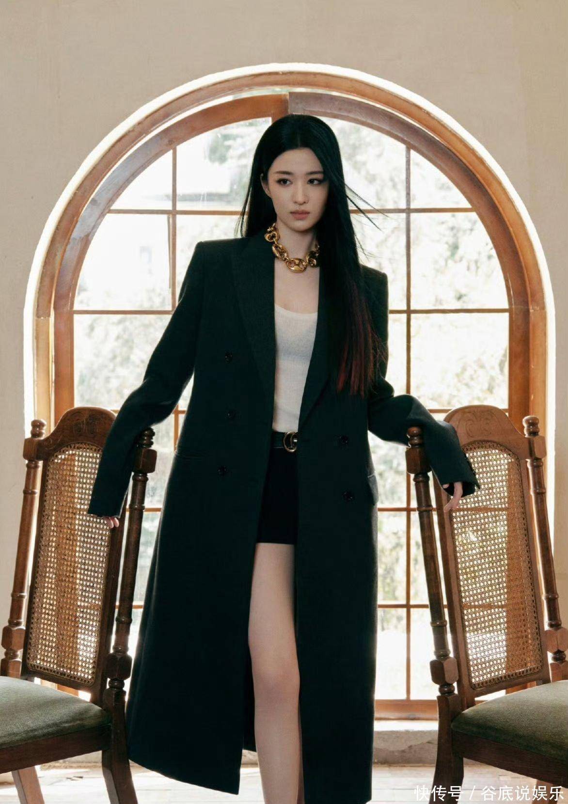 黑色风衣穿起来简直太飒了,一披上身瞬间气场全开,妥妥的女强人范儿。王楚然身上这件剪裁特别棒,设计走的是又撩又飒的路线,配上黑色高腰短裤,直接把身材优势全显出来了。